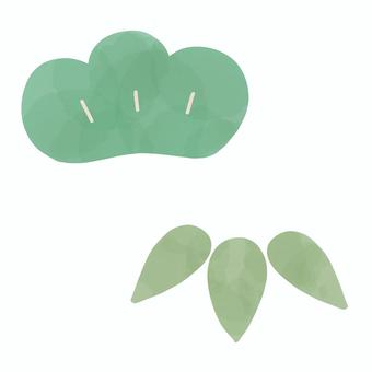 松と笹の葉っぱ 松,笹,葉っぱ,お正月,年賀状,絵本,可愛い,ゆるい,手描き,デコレーションのイラスト素材