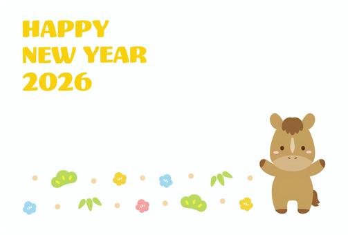 2026年のかわいい馬の年賀状04 年賀状,馬,午,午年,2026年,正月,お正月,フレーム,背景,賀詞のイラスト素材