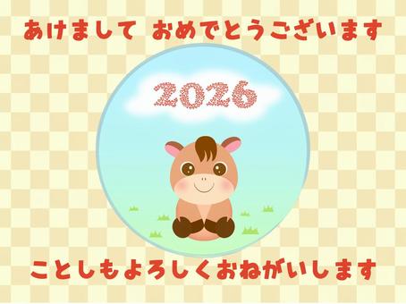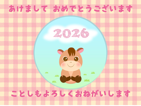2026年 西暦,年賀状,あけましておめでとうございます,午年,午,かわいい,挨拶,素材,感謝,お正月のイラスト素材