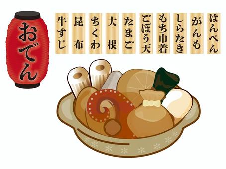 おでん おでん,赤提灯,お品書き,牛すじ,昆布,ごぼう天,もち巾着,メニュー,札,専門店のイラスト素材