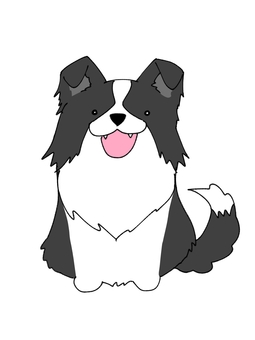 らくがき おすわりボーダーコリー 犬,ボーダーコリー,おすわり,落書き,ニコニコ,白黒,ゆるい,かわいい,ゆるかわ,モフモフのイラスト素材