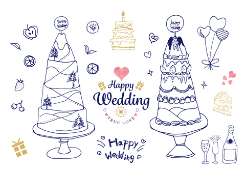 ウェディングケーキ手描き 結婚式,ブライダル,手描き,happy,wedding,ウェディングケーキ,ウエディング,挙式,式場,乾杯のイラスト素材
