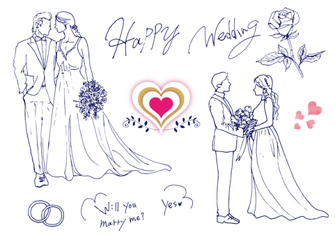 手描き 結婚式のイラストセット 結婚,結婚式,ウェディング,ブライダル,人物,新郎新婦,新郎,新婦,花嫁,花婿のイラスト素材