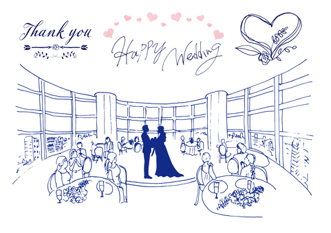 ウェディング手描き2 結婚式,ブライダル,レストラン,展望,眺望,手描き,happy,wedding,ウエディング,挙式のイラスト素材
