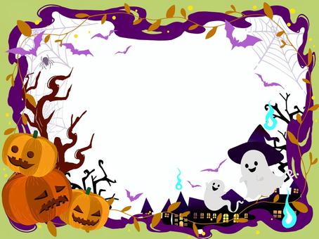 ハロウィンフレーム ハロウィン,カボチャ,ジャックオランタン,おばけカボチャ,お化け,ゴースト,幽霊,火の玉,帽子,蜘蛛のイラスト素材