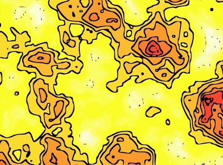 炎色の抽象コミック等高線 等高線,抽象的,アブストラクト,テクスチャ,背景,壁紙,黄色,オレンジ,赤,黒のイラスト素材
