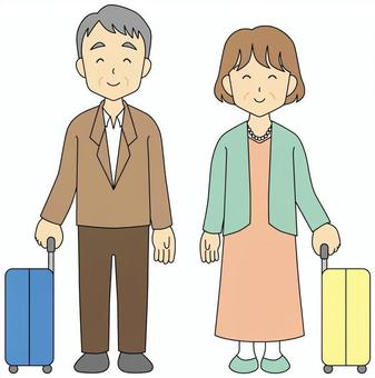 旅行9 旅行,スーツケース,キャリーバッグ,夫婦,シニア,高齢者,荷物,男性,女性,2人のイラスト素材