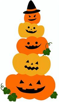 ハロウィンおばけかぼちゃのタワー ハロウィン,おばけ,かぼちゃ,タワー,複数,ベクター,オレンジ,黒,かわいい,10月のイラスト素材