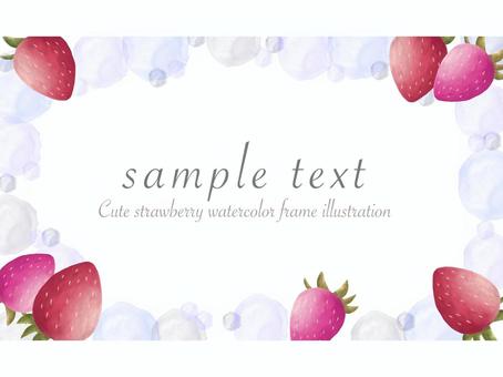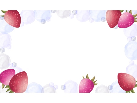 苺の水色水玉フレーム(文字なし) いちご,苺,フレーム,水彩風,水彩,枠,革,イチゴ,果物,ポストカードのイラスト素材