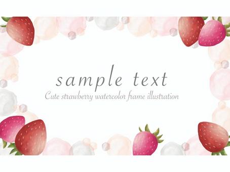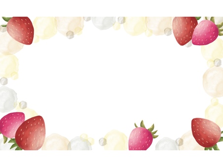 いちごのピンクの水玉フレーム(文字あり) いちご,苺,フレーム,水彩風,水彩,枠,革,イチゴ,果物,ポストカードのイラスト素材