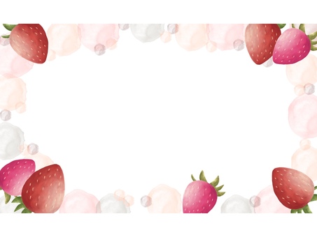 いちごのピンクの水玉フレーム(文字なし) いちご,苺,フレーム,水彩風,水彩,枠,革,イチゴ,果物,ポストカードのイラスト素材