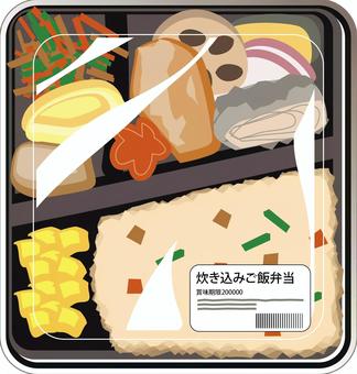 コンビニ弁当  弁当,炊き込みご飯,市販,コンビニ,スーパー,卵焼き,おかず,フタ,ラベルのイラスト素材