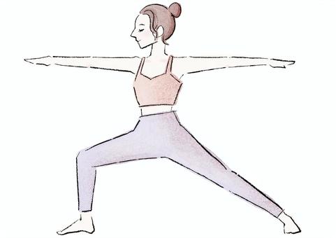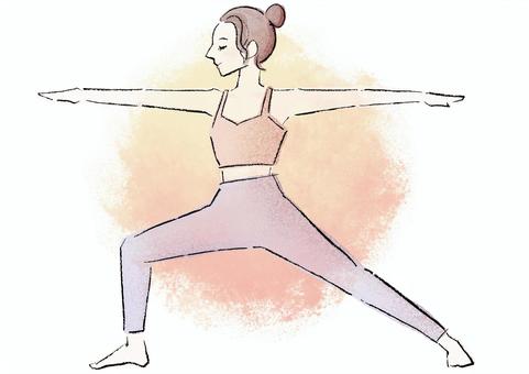 ヨガをする女性 ピンクウェア 手描き ヨガ,手描き,戦士のポーズ,女性,水彩,リラックス,インク,戦士,ポーズ,ピンクのイラスト素材