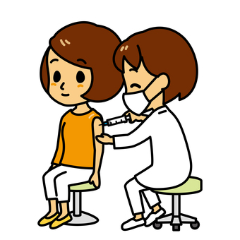ワクチン接種をする若い女性 注射,ワクチン,予防接種,ワクチン接種,女性,医師,医者,若い,若者,10代のイラスト素材