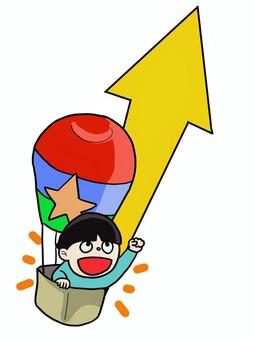上昇気流! 気球,男の子,矢印,上,上がる,上向き,ポジティブ,元気,やる気,前向きのイラスト素材