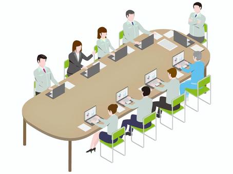 町工場シリーズ 活発な会議しよーぜ! 会議,ミーティング,議論,全身,人物,アイソメ,アイソメトリック,社長,経営者,サラリーマンのイラスト素材