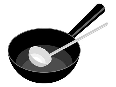 中華鍋とお玉 中華鍋,片手鍋,鍋,鉄鍋,鉄,フライパン,レードル,持ち手,調理器具,厨房のイラスト素材