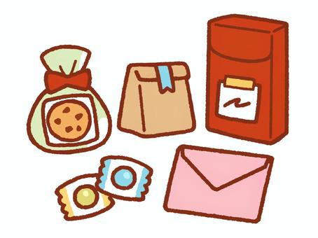 お菓子や手紙のプレゼント 差し入れ,プレゼント,バレンタイン,手紙,お菓子,食べ物,手書き,クッキー,飴,キャンディのイラスト素材