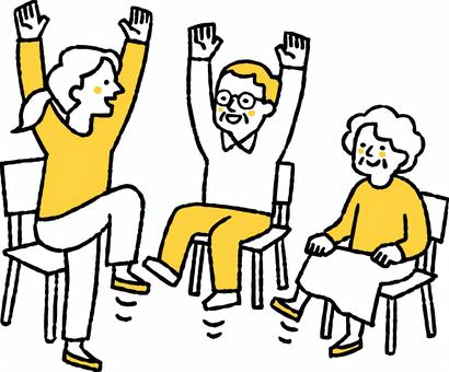 高齢者施設で体操をする男女 高齢者施設,体操,足,遊び,高齢者,男性,女性,シニア,老人,お年寄りのイラスト素材