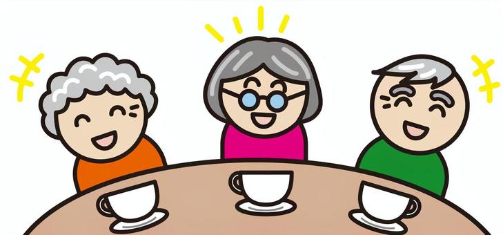 シニアの茶話会 老人,茶話会,お年寄り,お茶会,シニア,年寄り,老人ホーム,談笑,笑顔,かわいいのイラスト素材