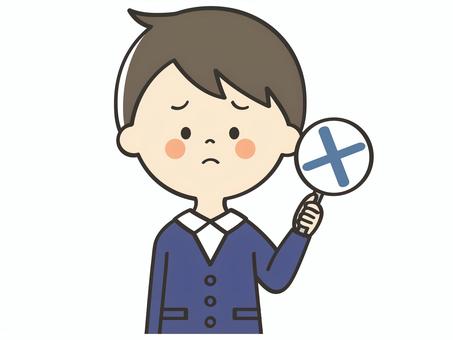 バツの札を持つ男の子