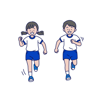 体操服で元気に走る園児のイラスト 人物,園児,体操服,走る,幼稚園,保育園,子ども,男の子,女の子,運動のイラスト素材