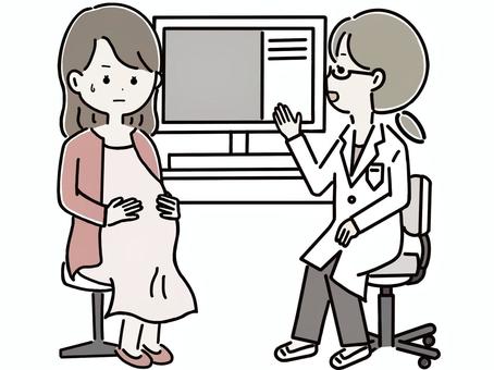 診察を受ける妊婦と医師 深刻な表情 妊婦,妊娠,出産,マタニティ,臨月,ママ,お腹,赤ちゃん,胎児,親のイラスト素材