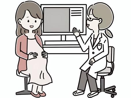診察を受ける妊婦と医師 笑顔 妊婦,妊娠,出産,マタニティ,臨月,ママ,お腹,赤ちゃん,胎児,親のイラスト素材