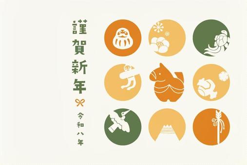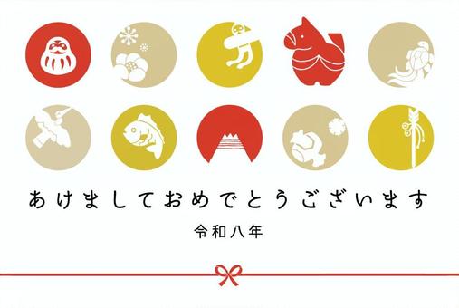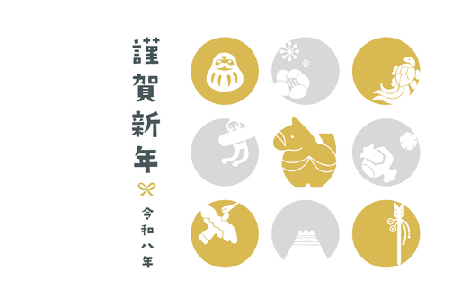 2026年の年賀状テンプレート・和風 年賀状,正月,新年,年賀はがき,2026年,令和八年,テンプレート,賀正,元旦,新春のイラスト素材