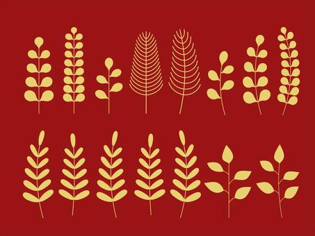 葉のアイコンセット/金 葉,アイコン,シルエット,ボタニカル,ボタニカル素材,葉っぱ,植物,シダ,北欧,北欧風のイラスト素材