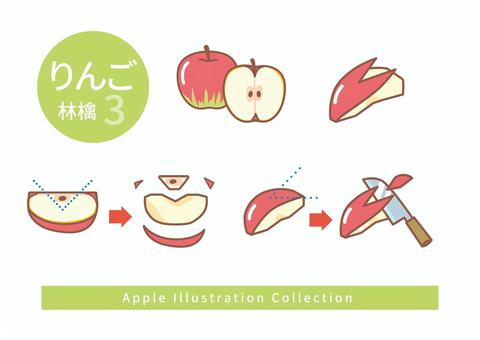 りんごのイラストセット3 りんご,切り方,うさぎ,皮,種,半分,包丁,まとめ,セットのイラスト素材