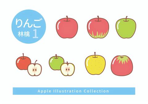 りんごのイラストセット1 りんご,赤い,青りんご,姫林檎,グラニースミス,トキりんご,裏,セット,まとめ,一個のイラスト素材