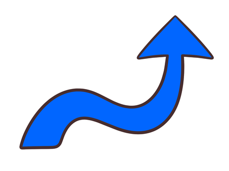 上昇トレンド 矢印② 青 矢印,右上矢印,カーブ,手書き,太め,上向き,上昇,指示,案内,方向のイラスト素材