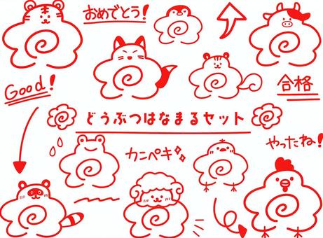 どうぶつはなまるセット_採点2 はなまる,ヒツジ,ニワトリ,ヒヨコ,リス,カエル,タヌキ,キツネ,トラ,ペンギンのイラスト素材