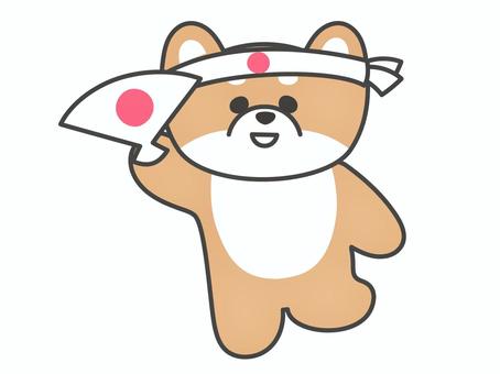 日の丸のはちまきと扇子で踊る犬 犬,扇子,踊る,ダンス,応援,はちまき,日の丸,キャラクター,宴会芸,かわいいのイラスト素材
