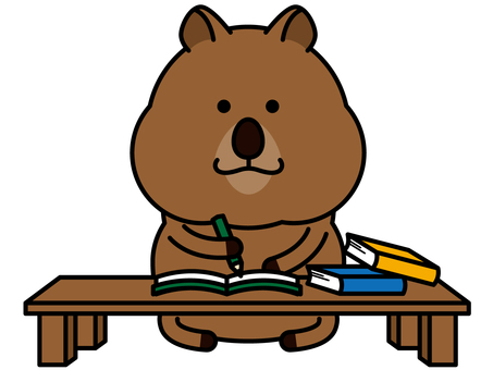 ウォンバットさん 勉強 宿題,勉強,ウォンバット,机,本,ノート,教科書,鉛筆,動物,キャラクターのイラスト素材