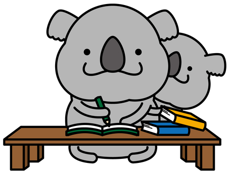 コアラさん 勉強 宿題,勉強,コアラ,机,本,ノート,教科書,鉛筆,親子,動物のイラスト素材