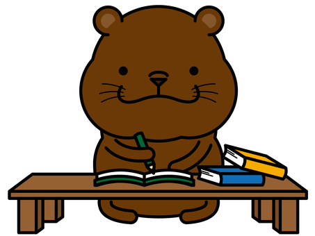 カワウソさん 勉強 宿題,勉強,カワウソ,机,本,ノート,教科書,鉛筆,動物,キャラクターのイラスト素材