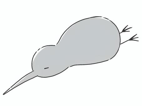 寝転ぶキウイ(モノクロ) キウイ,鳥,手描き,シンプル,ニュージーランド,かわいい,飛べない鳥,モノクロ,寝転ぶのイラスト素材