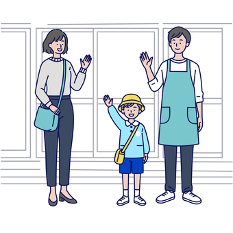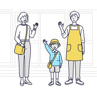お母さんに見送られる園児と保育士 人物,親子,登園,園児,幼稚園,保育園,保育士,先生,お母さん,男の子のイラスト素材