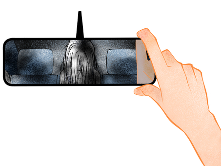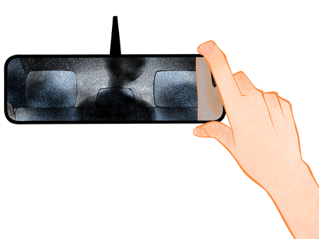 バックミラーとそえる手 ホラーな人影 バックミラー,手,そえる,車,ホラー,後部座席,人物,人影,暗い,うつるのイラスト素材