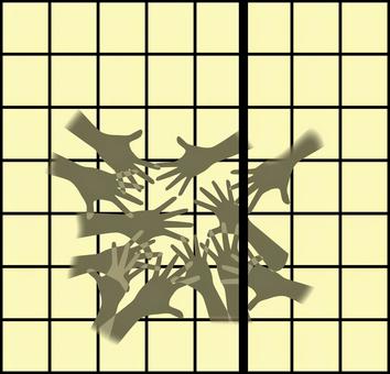 手のひらホラー  手のひら,沢山,人物,重なる,ホラー,障子,和風,怪談,怖い,シルエットのイラスト素材