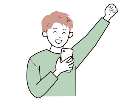 スマホと拳をあげる男子2/カラー