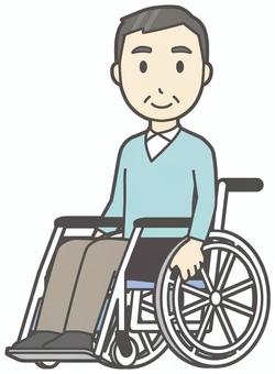 ニット中年男性-294-全身 車いす,おじさん,男性,中年,お父さん,パパ,シニア,ミドルエイジ,人物,かわいいのイラスト素材
