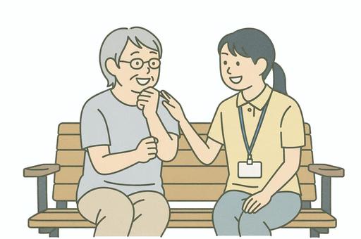 笑顔で寄り添うひととき 介護,福祉,ケア,コミュニケーション,支援,高齢者,会話,安心,笑顔,寄り添いのイラスト素材