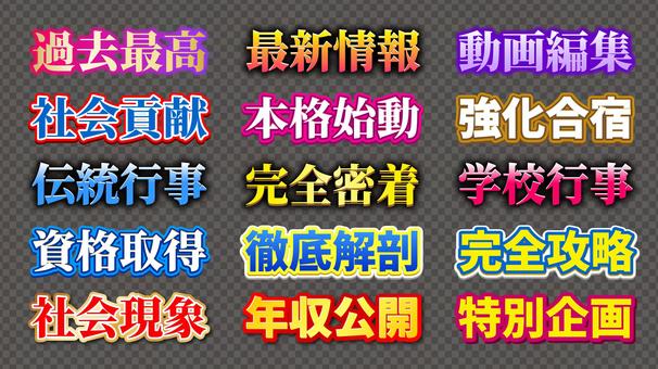 サムネ用テロップ文字素材4 テロップ,文字,装飾,修飾,字幕,見出し,サムネ,サムネイル,強調,ベストのイラスト素材