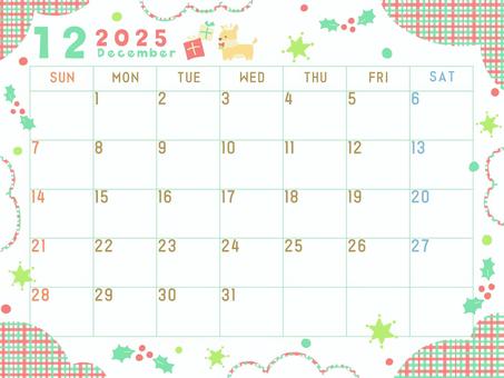 2025年12月のカレンダー クリスマス 2025年,12月,カレンダー,冬,クリスマス,かわいい,おしゃれ,予定表,書き込み,月間のイラスト素材