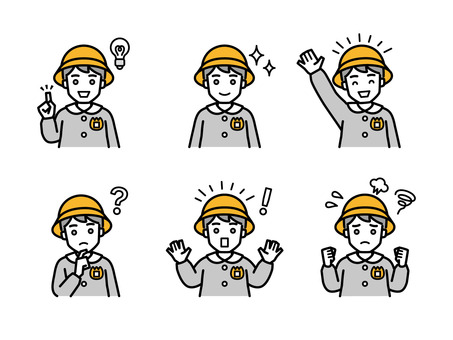 園児 男の子B 帽子(Bショット) 人物,男の子,幼稚園,園児服,悩む,解決,びっくり,怒る,焦る,困るのイラスト素材