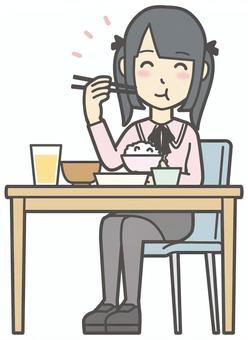 「朝ごはんを食べる」のイラスト素材