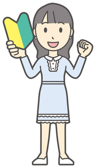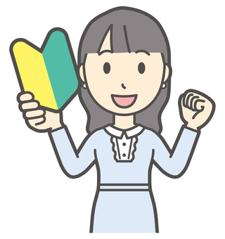 未経験 女性 初心者マーク,若葉マーク,未経験,初心者,ガッツポーズ,安心,大丈夫,ビギナー,初めて,未熟のイラスト素材